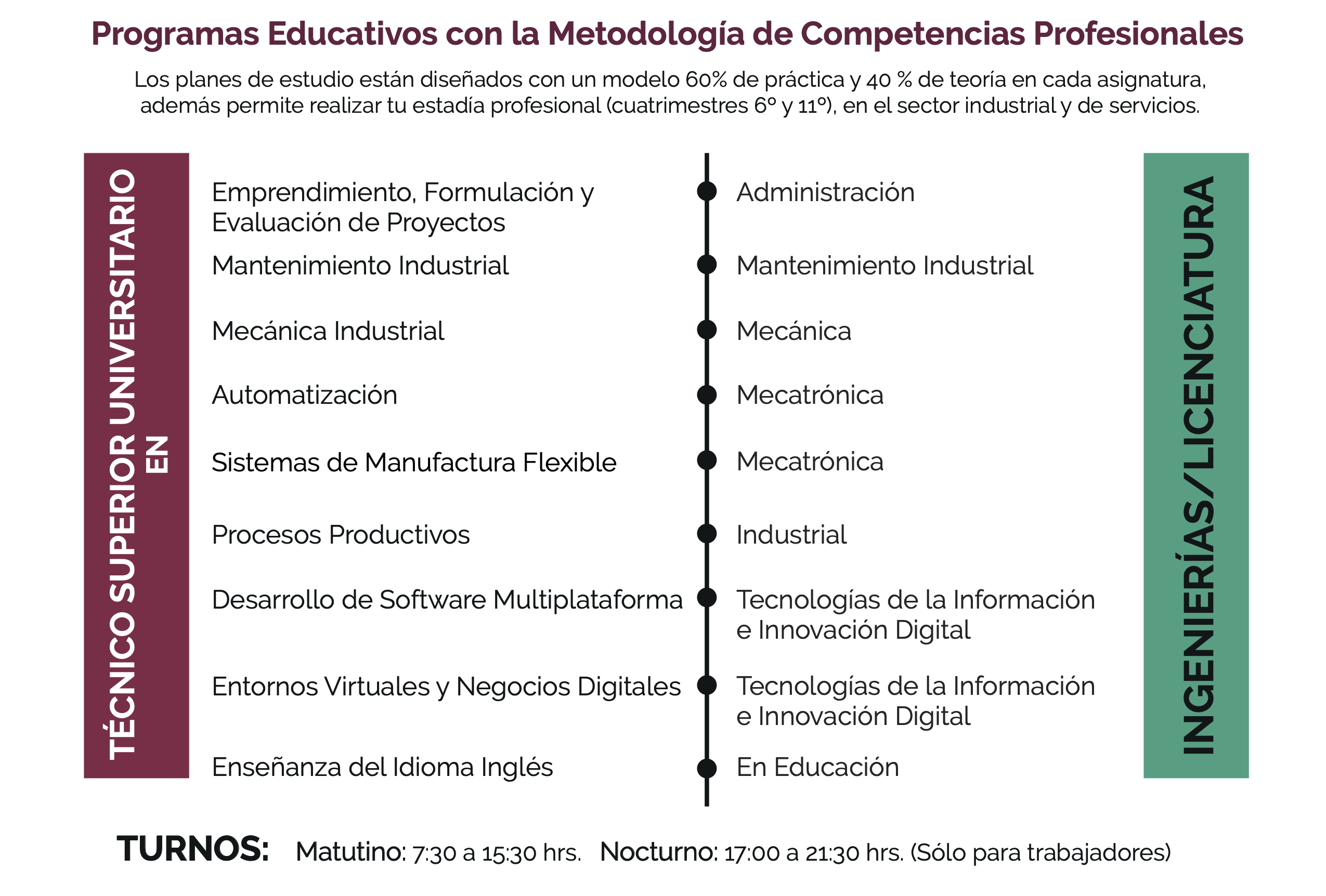 Formar TSU e Ingenieros Profesionales con una sólida preparación, tecnológica, científica y humanista en el marco de un modelo educativo basado en competencias profesionales, con el fin de que sean capaces de desarrollar e integrar soluciones tecnológicas.