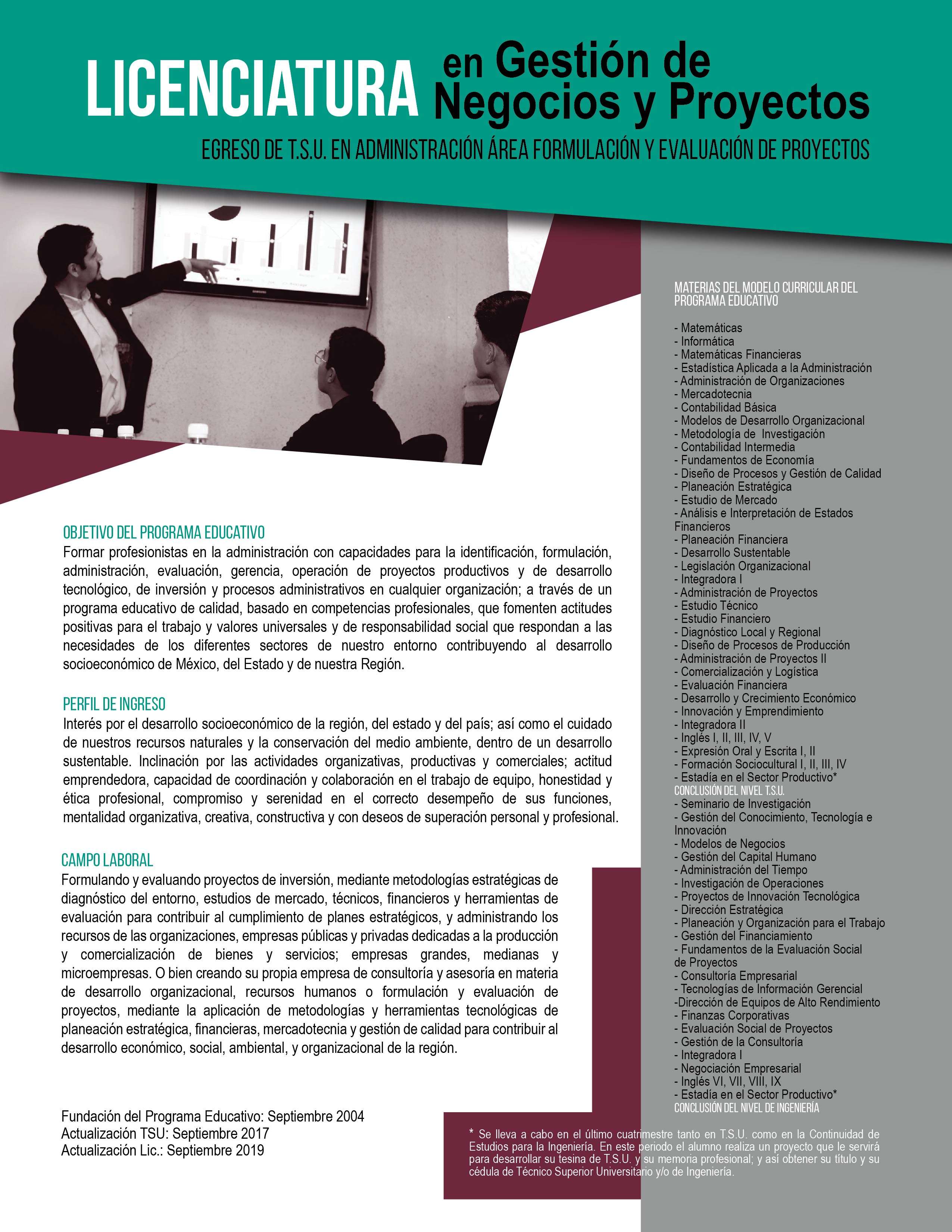 Área formulación y evaluación de proyectos
